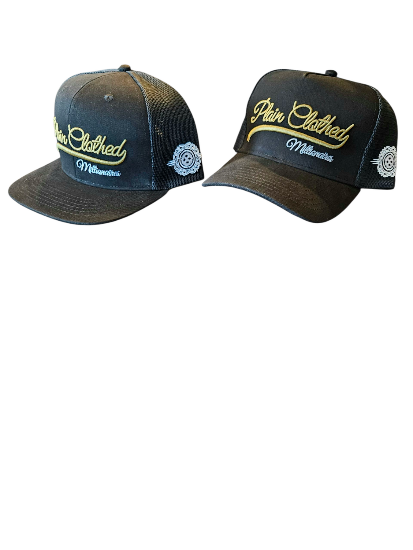 "The Elevation" Trucker Hat is illustrated with 3D script embroidery, our signature button logo embroidered on the side, and our year of establishment on the rear finished with a flat or curved brim.